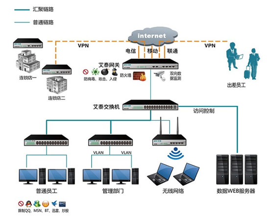 隨著經(jīng)濟(jì)的發(fā)展,連鎖經(jīng)營(yíng)在全國(guó)得到了大規(guī)模的發(fā)展。連鎖經(jīng)營(yíng)模式的重點(diǎn)在零售、餐飲和服務(wù)三個(gè)行業(yè)。其中,零售行業(yè)是連鎖經(jīng)營(yíng)應(yīng)用為成熟的行業(yè),餐飲業(yè)特許經(jīng)營(yíng)的發(fā)展也不可小視,服務(wù)業(yè)的連鎖經(jīng)營(yíng)作為連鎖經(jīng)營(yíng)新的拓展領(lǐng)域,發(fā)展勢(shì)頭十分強(qiáng)勁。特別是加入了加入世界貿(mào)易組織后,我國(guó)將與世界進(jìn)步進(jìn)一步的融合,勢(shì)必,行業(yè)競(jìng)爭(zhēng)將更加激烈,它為我國(guó)連鎖經(jīng)營(yíng)的發(fā)展注入了新的動(dòng)力。而完善的物流配送體系的建立將解決長(zhǎng)期以來制約我國(guó)連鎖企業(yè)發(fā)展的瓶頸問題。艾泰科技向客戶提供優(yōu)秀的網(wǎng)絡(luò)設(shè)備和解決方案。其開發(fā)的VPN產(chǎn)品能夠充分利用現(xiàn)有的網(wǎng)絡(luò)資源,提供經(jīng)濟(jì),靈活的聯(lián)網(wǎng)方式,為客戶節(jié)省設(shè)備、人員和管理所需的投資,能夠利用無處不在的Internet通過單一網(wǎng)絡(luò)結(jié)構(gòu)為各連鎖店間提供無縫和安全的連接,減輕了企業(yè)遠(yuǎn)程訪問費(fèi)用的負(fù)擔(dān),并且提供了安全的端到端的數(shù)據(jù)通訊。