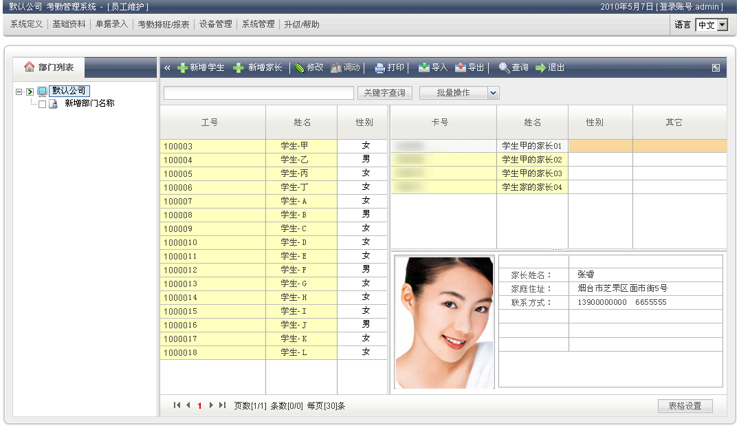 以學(xué)生和家長為基準(zhǔn),可實(shí)現(xiàn)“一對一”或“一對多”的卡片與家長對應(yīng)方式,添加人員檔案可單個(gè)對指定班級(jí)添加人員,如果人員較多可成批導(dǎo)入人員檔案,如果有新增班級(jí),系統(tǒng)自動(dòng)創(chuàng)建新增班級(jí)并包含人員檔案。