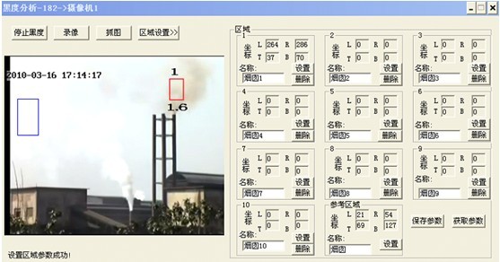 環(huán)保項(xiàng)目的視頻服務(wù)器產(chǎn)品,要求具備林格曼黑度分析功能,對煙囪的排煙黑度進(jìn)行實(shí)時(shí)分析,如圖所示: